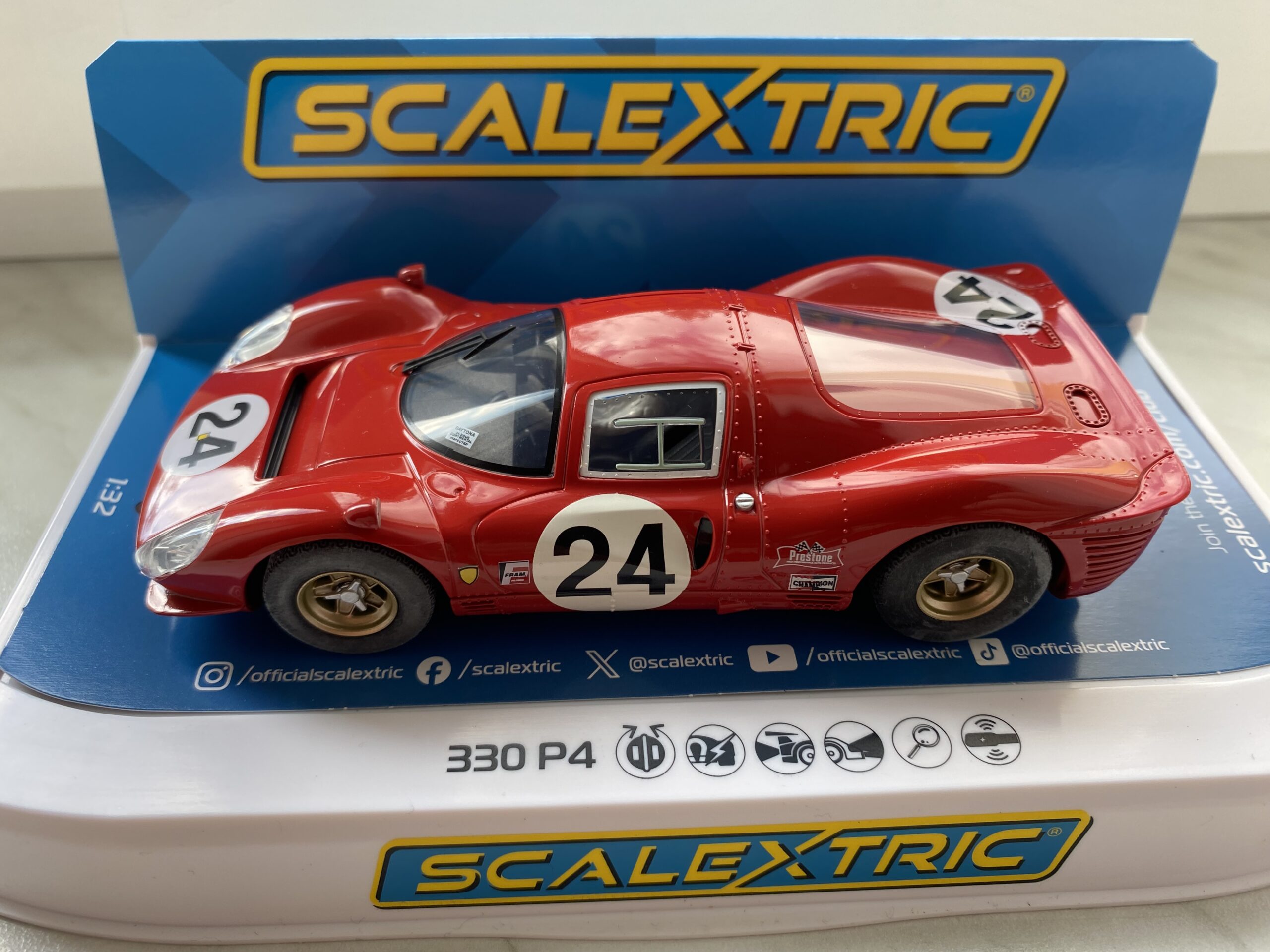 Autičko na autodrahu v maximalnim detailu,sviti předni i zadni světla.Magnet pro lepši přilnavost na draze.Druhe misto v zavodě 24 h. Daytona 1967- piloti: Parkes / Scarfiotti st.č. 24. Autičko vytažene z trojbaleni limitovane edice,normalně zvlašt neprodejne.(pouze 1ks)
